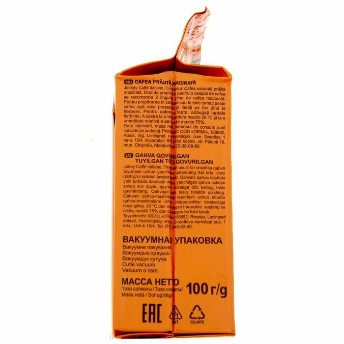 Кофе молотый Жокей Caffe Italiano, 100 г, вакуумная упаковка, 18 уп.