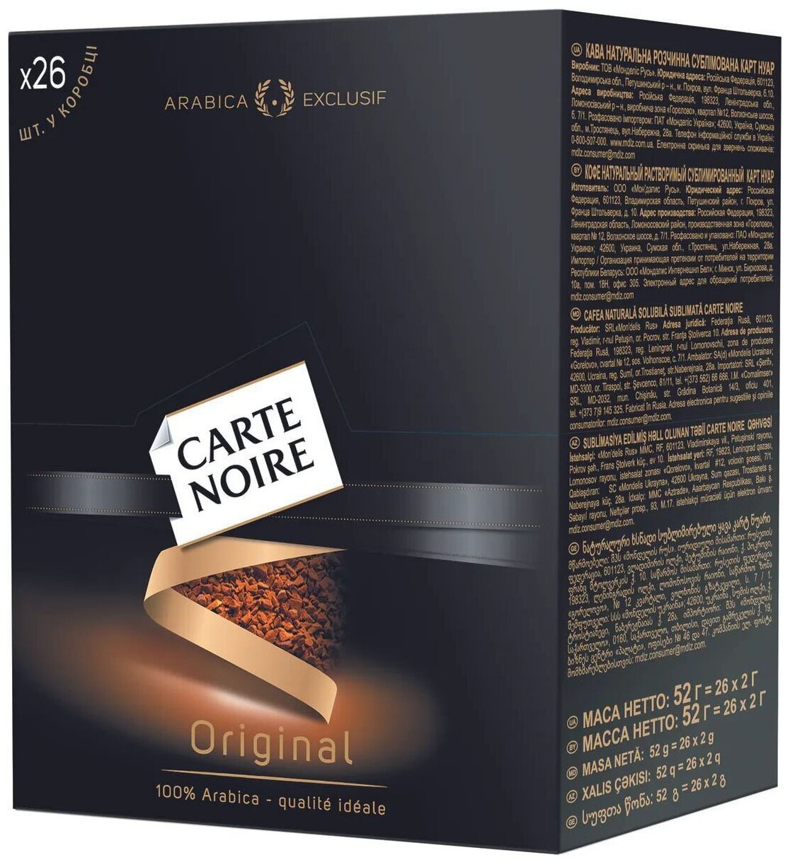 Кофе растворимый Carte Noire Original, 26 шт по 1,8 г (Карт Нуар)