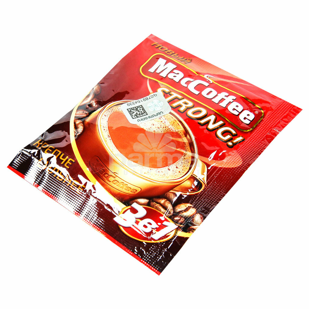 Напиток кофейный растворимый т.з. "MacCoffee" (3 в 1) "Strong", м/уп 16г 25 пакетиков в упаковке