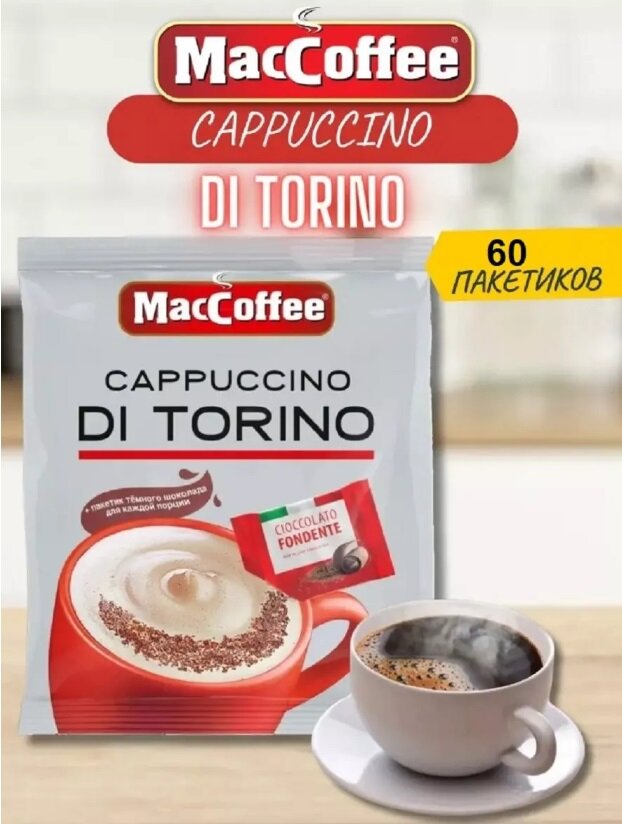 Купить Растворимый кофе MacCoffee Cappuccino di Torino с шоколадом, в пакетиках, 60 уп., 1530 г
