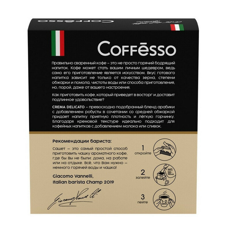 Молотый кофе Coffesso Crema Delicato, в дрип-пакетах, 5 уп., 45 г интересное: