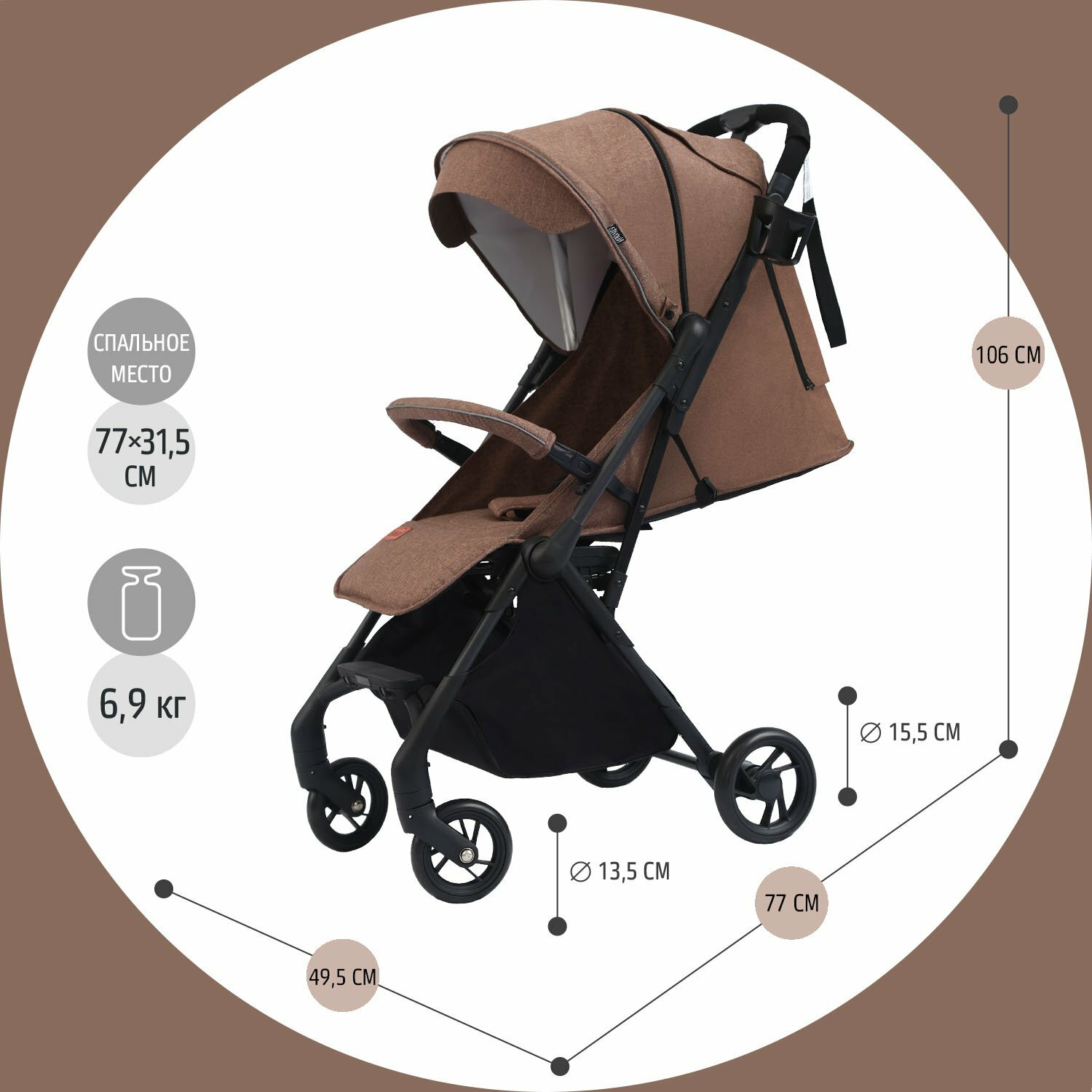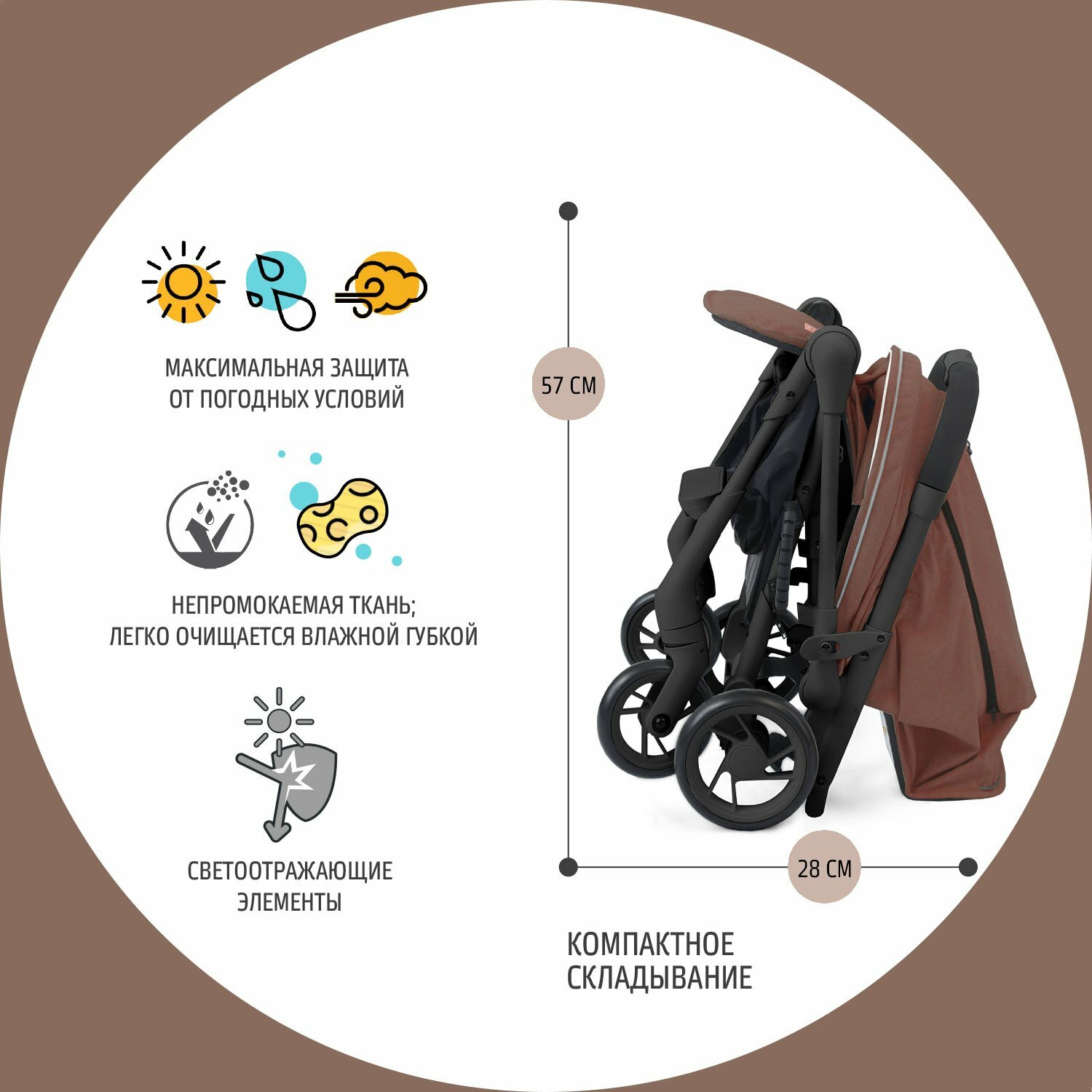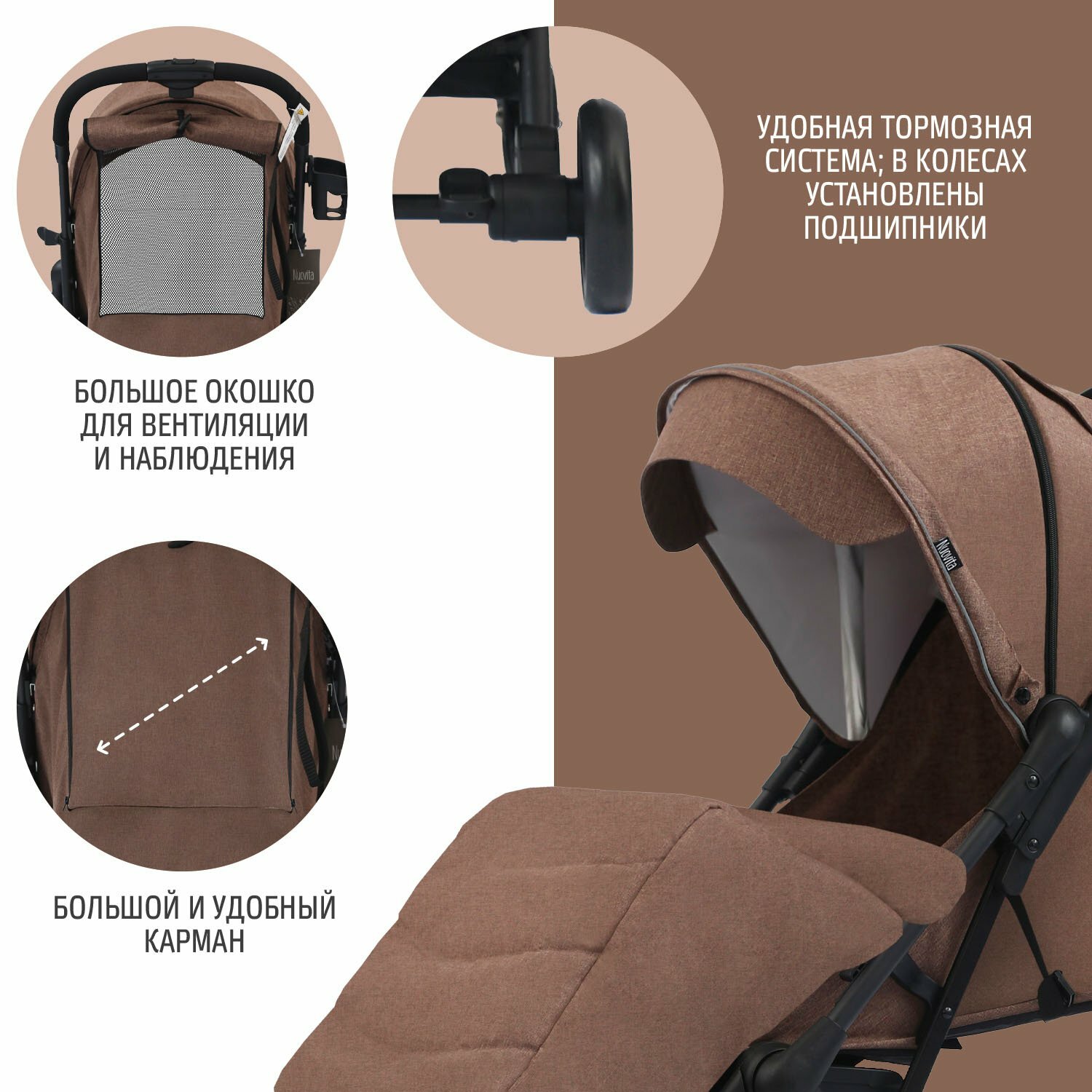 Купить Коляска прогулочная Nuovita Sfera 6-36 месяцев всесезонная складная детская, с поворотными колесами и амортизацией (Caffè scuro, Nero / Кофе темный, Черный)