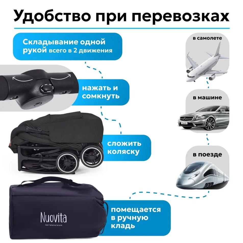 СохранитьКоляска прогулочная детская легкая Nuovita Vero (Nero / Черный) интересное: