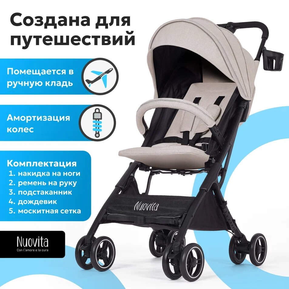 Коляска прогулочная детская легкая Nuovita Vero (Beige / Бежевый)