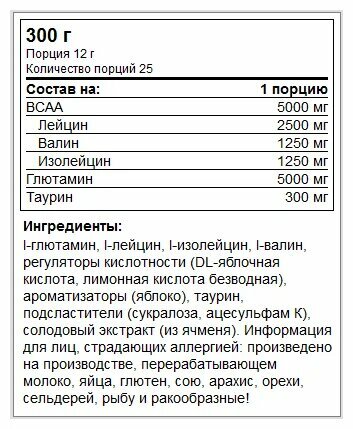 Аминокислоты BCAA+Glutamine Xpress, 300 г, вкус: яблоко