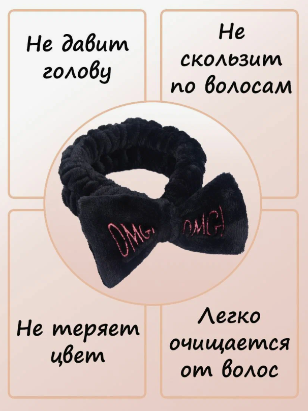 DOUBLE DARE OMG! Бант-повязка для фиксации волос во время косметических процедур, черный / SPA