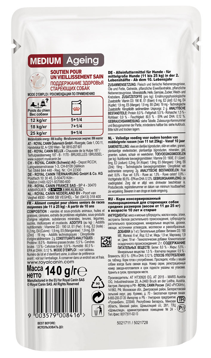 Купить Влажный корм для пожилых собак Royal Canin старше 10 лет 1 уп. х 10 шт. х 140 г (для средних пород)