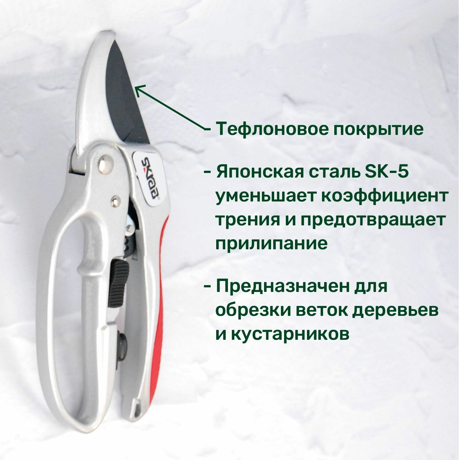 Секатор трещёточный c тефлоновым покрытием лезвий садовый 205мм сталь SK5 Skrab 28169 интересное: