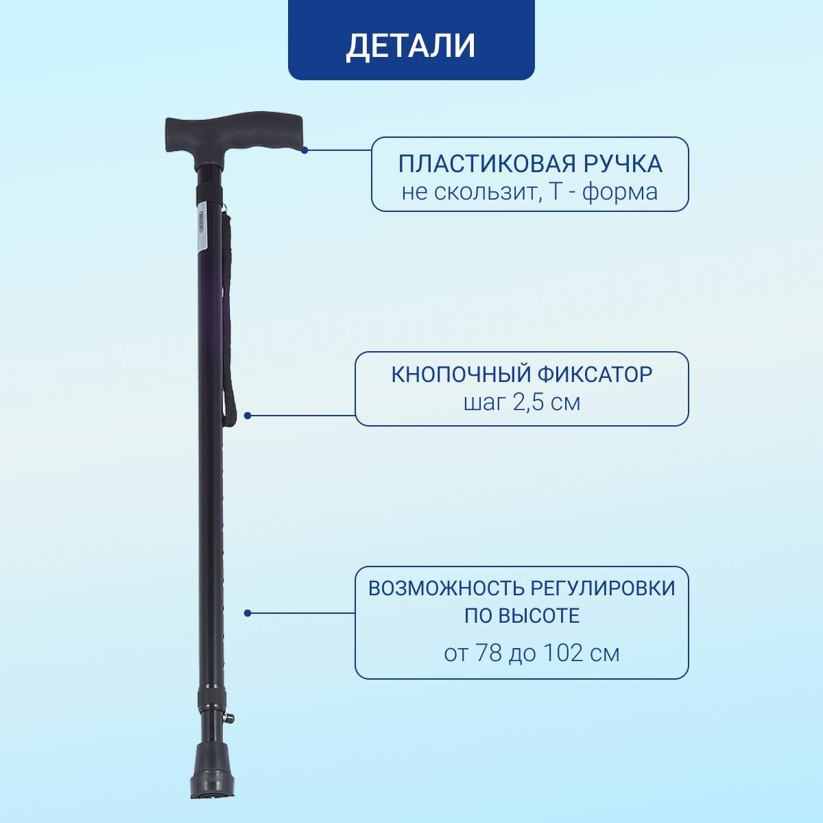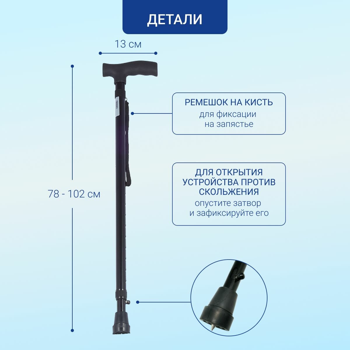 СохранитьОпорная трость для пожилых телескопическая Bronigen BOC-100, регулируемая по высоте, для ходьбы с устройством против скольжения, черная с упс интересное: