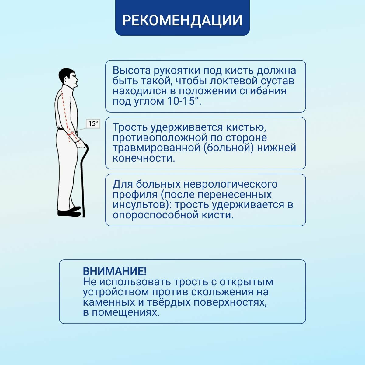 Трость инвалидная, регулируемая, опорная, с УПС и пластиковой ручкой