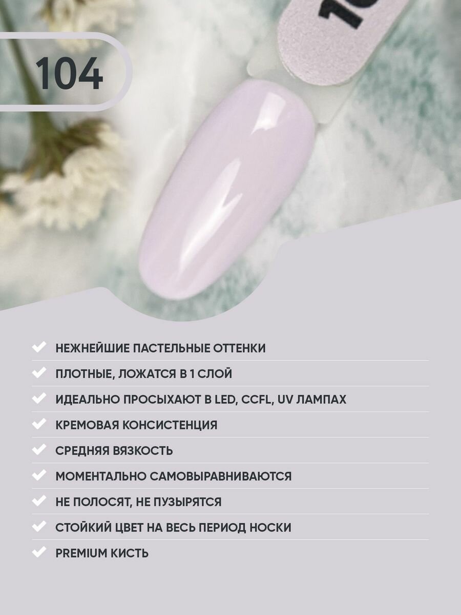 Гель лак для ногтей Пастельная коллекция Gelato №104, теплый светло-сиреневый, 8 мл