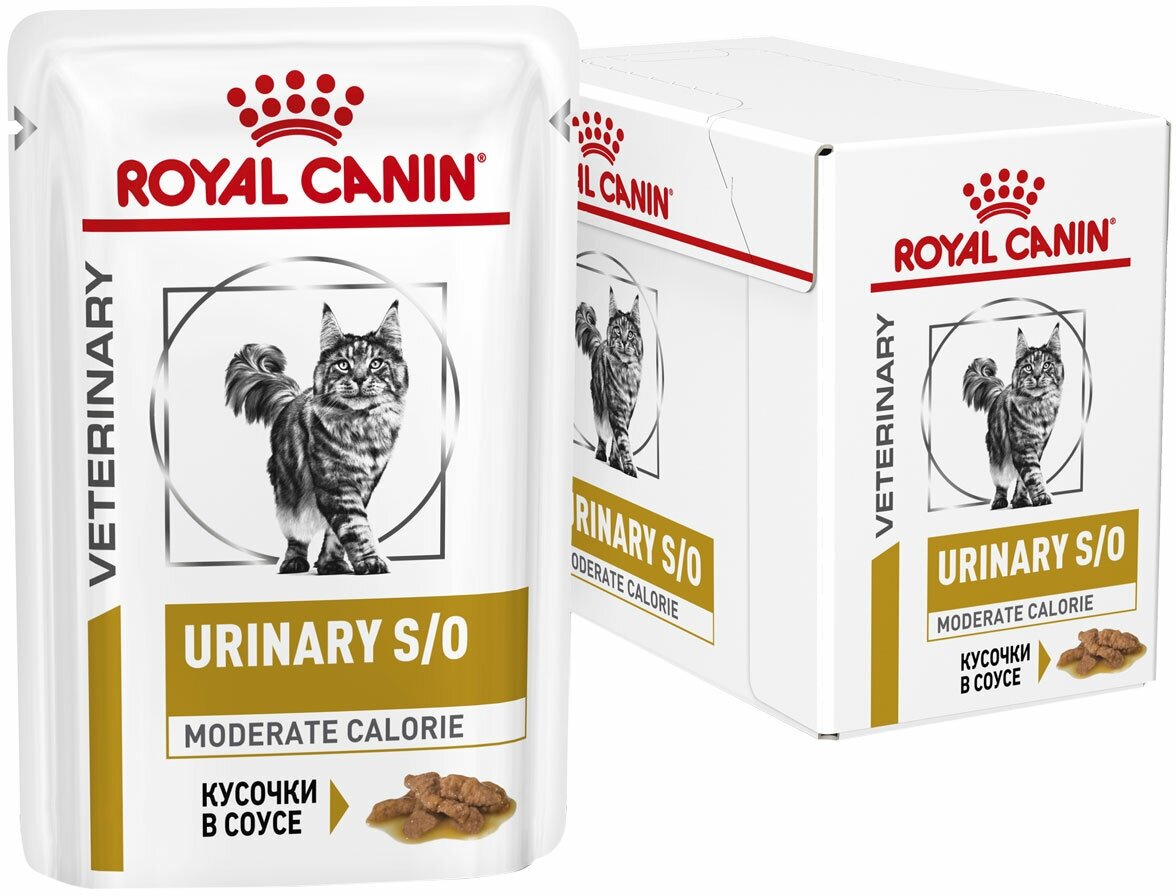 Влажный корм для кошек Royal Canin Urinary S/O Moderate Calorie, для лечения МКБ, 12 шт. х 85 г (кусочки в соусе)