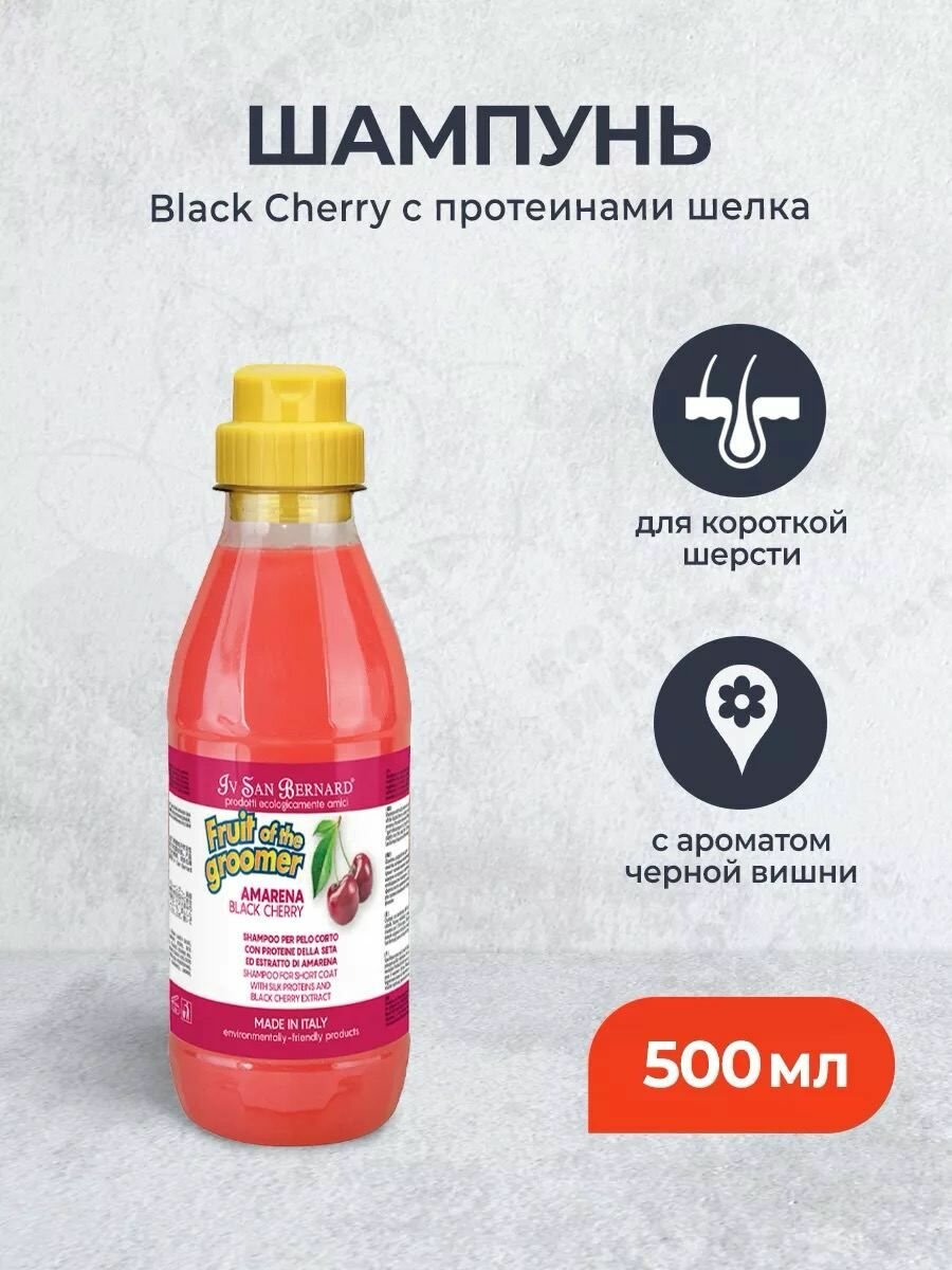 Шампунь для животных Iv San Bernard ISB Fruit of the Grommer Black Cherry, для короткой шерсти, с протеинами шелка, 500 мл, NSHAAM500