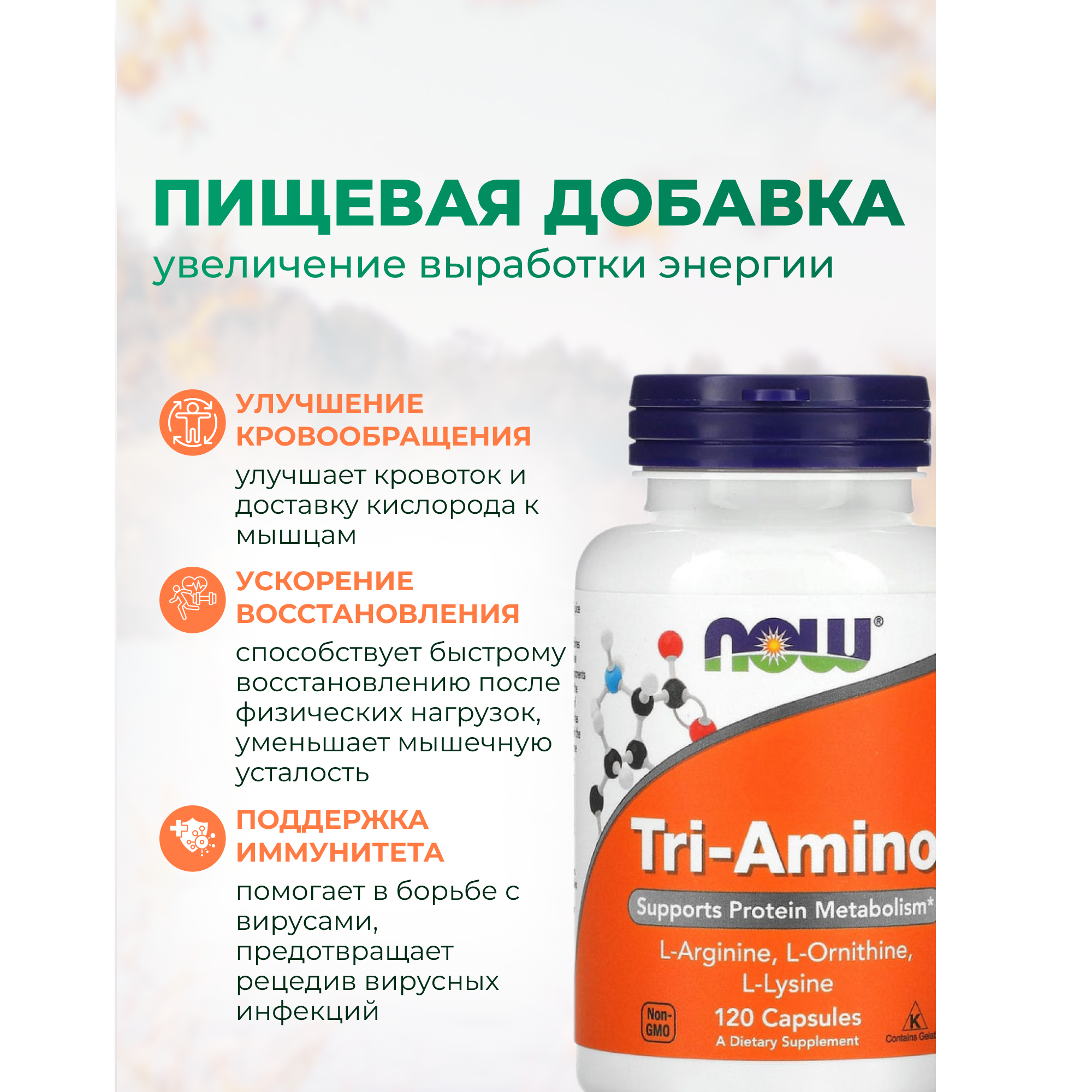 NOW Tri-Amino 120 капсул аргинин орнитин лизин, аминокислотный комплекс