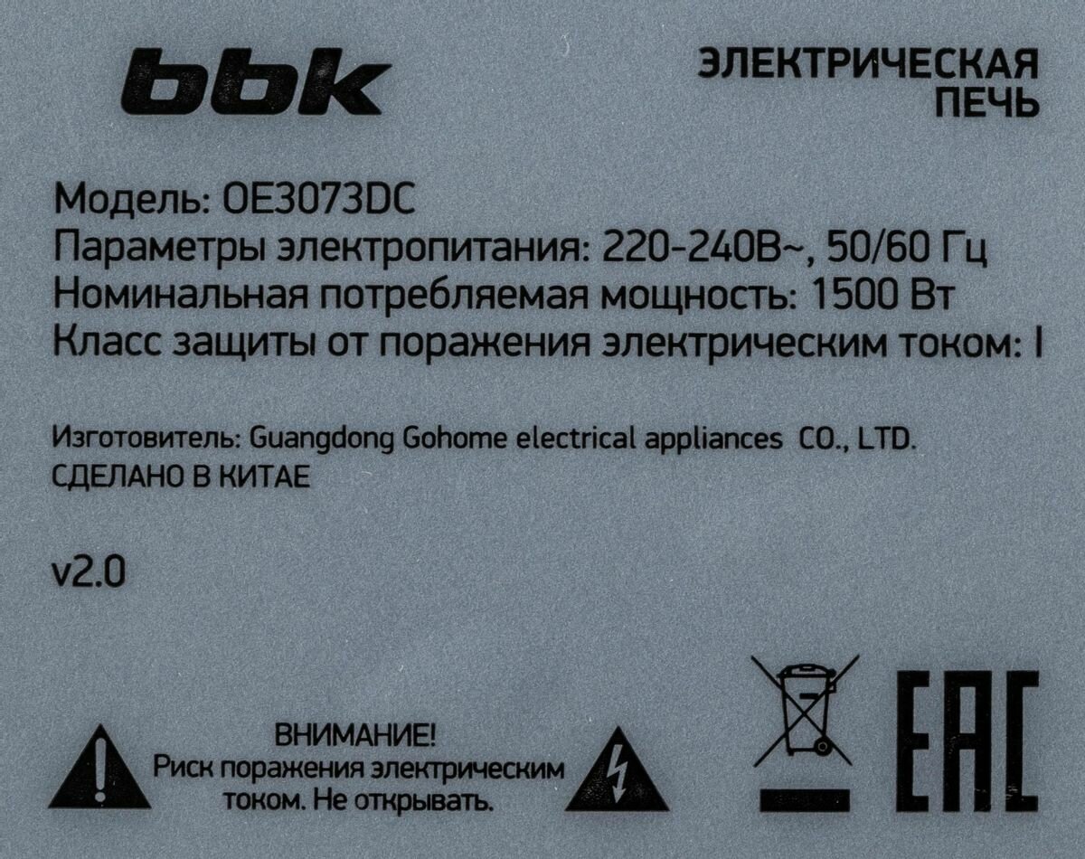 bbk Духовка электрическая OE3073DC черный/серебро 00-00000428
