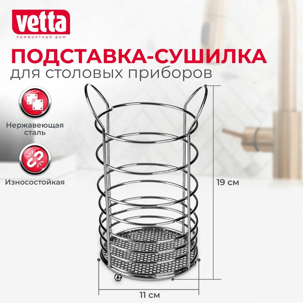 Купить VETTA Сушилка для столовых приборов, металл, d11х19см, A 22