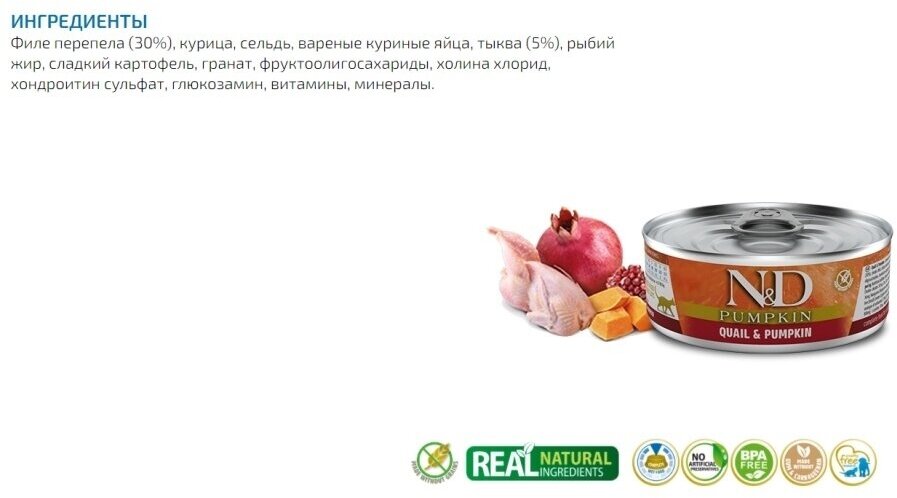 СохранитьВлажный корм с перепелкой и тыквой, для кошек, Farmina N&D Quail&Pumpkin, упаковка 12 шт х 80 г интересное: