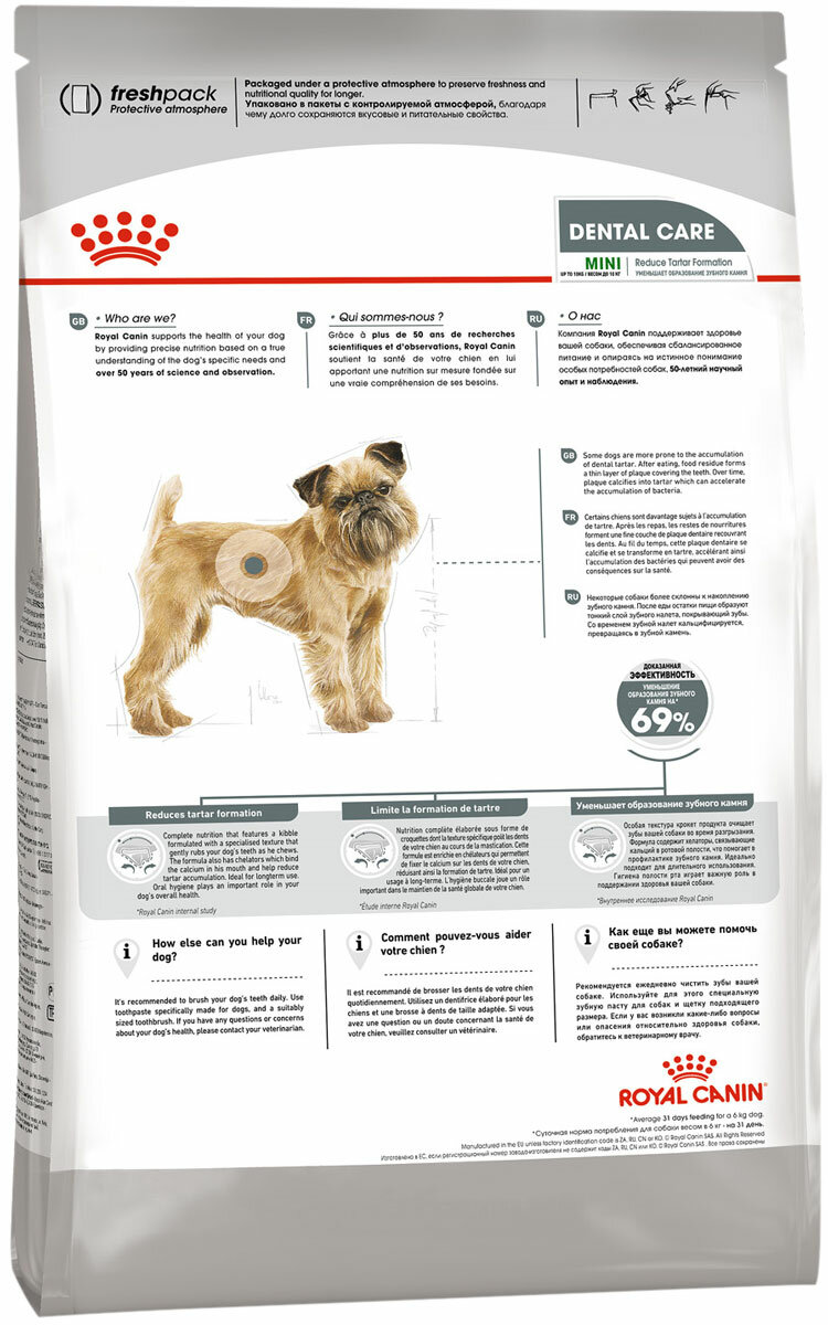 Royal Canin Mini Dental Care (Мини Дентал Кэа) Сухой корм для взрослых и стареющих собак мелких пород (весом от 1 до 10 кг) в возрасте 10 месяцев и старше, предрасположенных к чувствительности зубов и десен - 1 кг