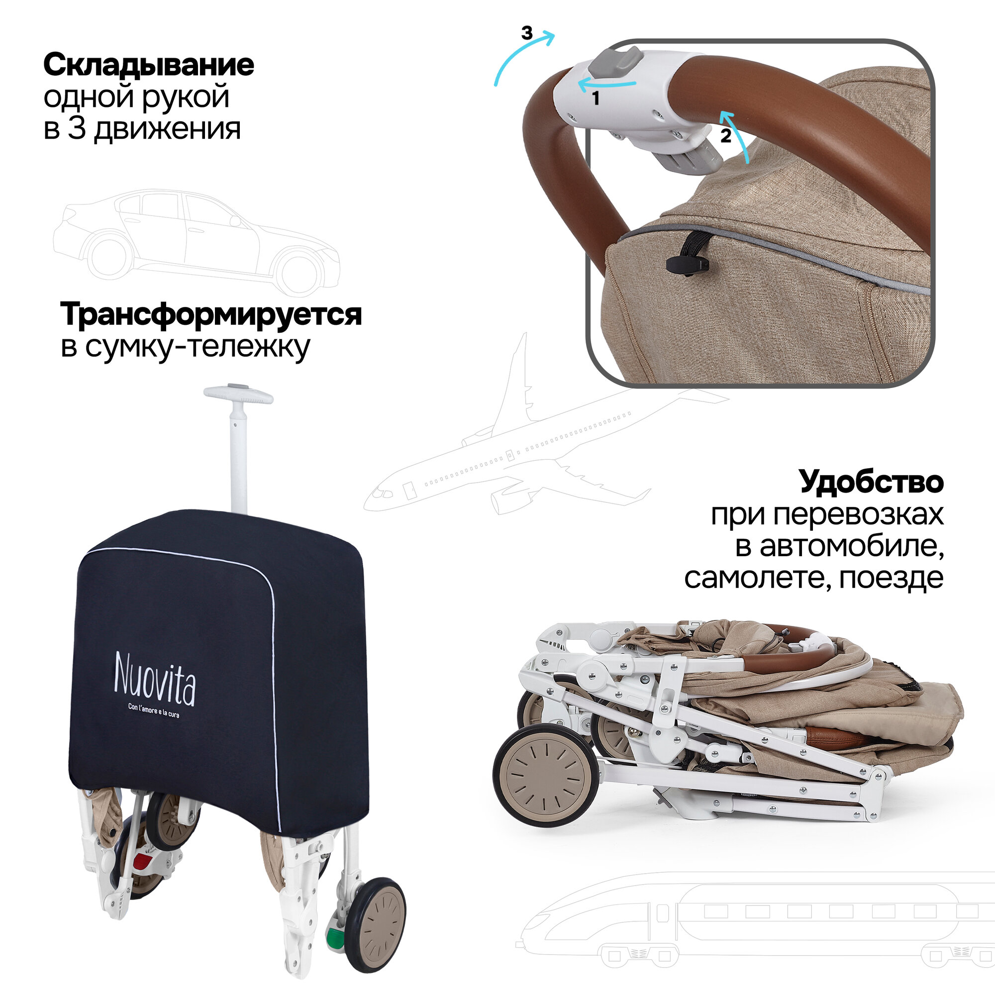 СохранитьКоляска прогулочная детская Nuovita Giro Lux , складная, сумка-чехол в комплекте (Бежевый, Белый) интересное: