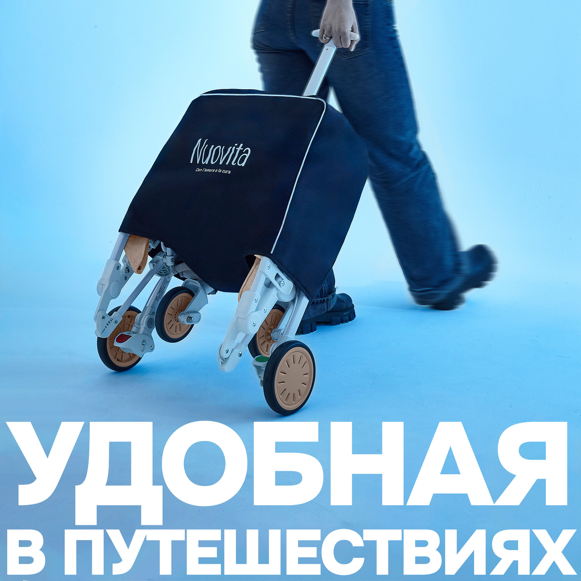 Коляска прогулочная детская Nuovita Giro Lux , складная, сумка-чехол в комплекте ( Джинсовый, Черный)