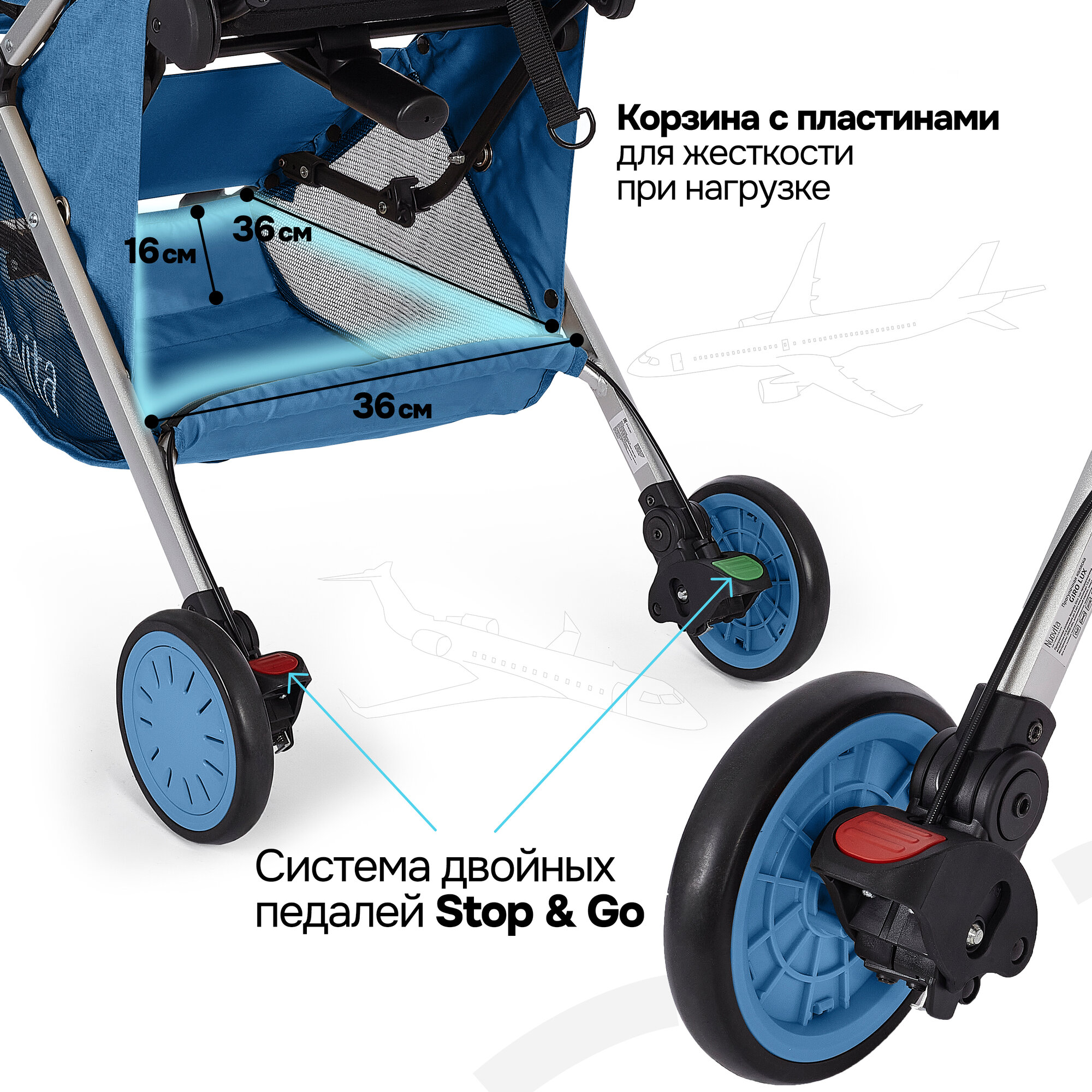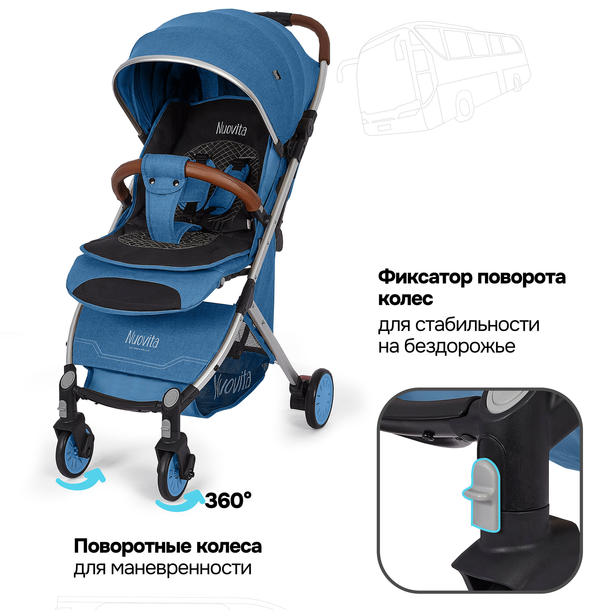 Коляска прогулочная детская Nuovita Giro Lux , складная, сумка-чехол в комплекте (Синий, Серебряный)