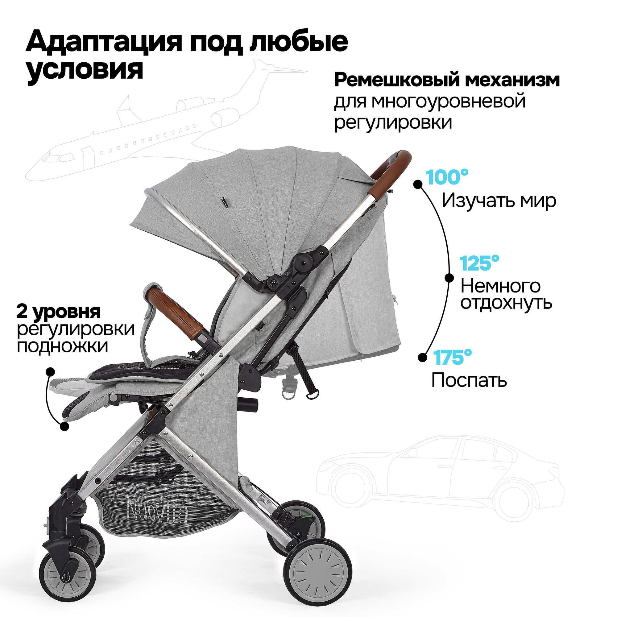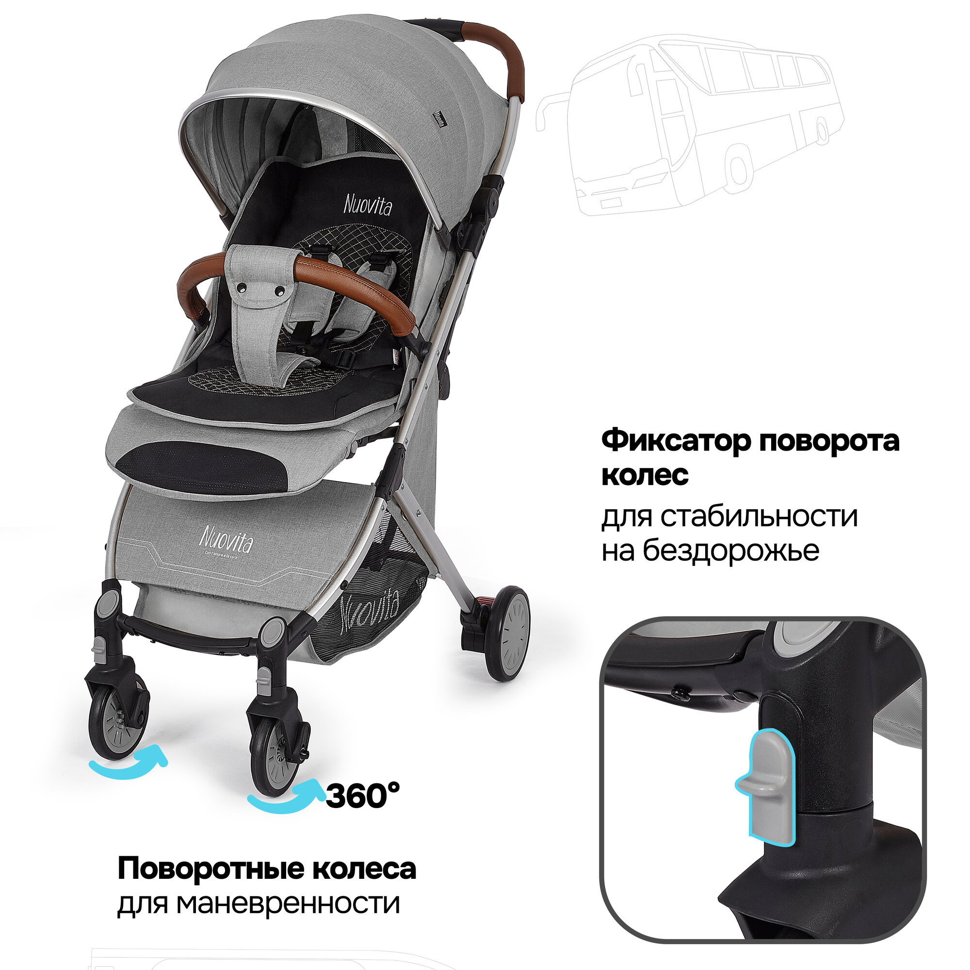 Купить Коляска прогулочная детская Nuovita Giro Lux , складная, сумка-чехол в комплекте ( Серый, Серебряный)