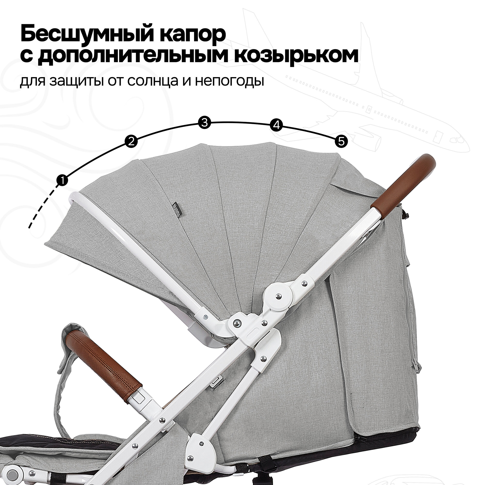 Коляска прогулочная детская Nuovita Giro Lux , складная, сумка-чехол в комплекте ( Кофейный, Серебряный)