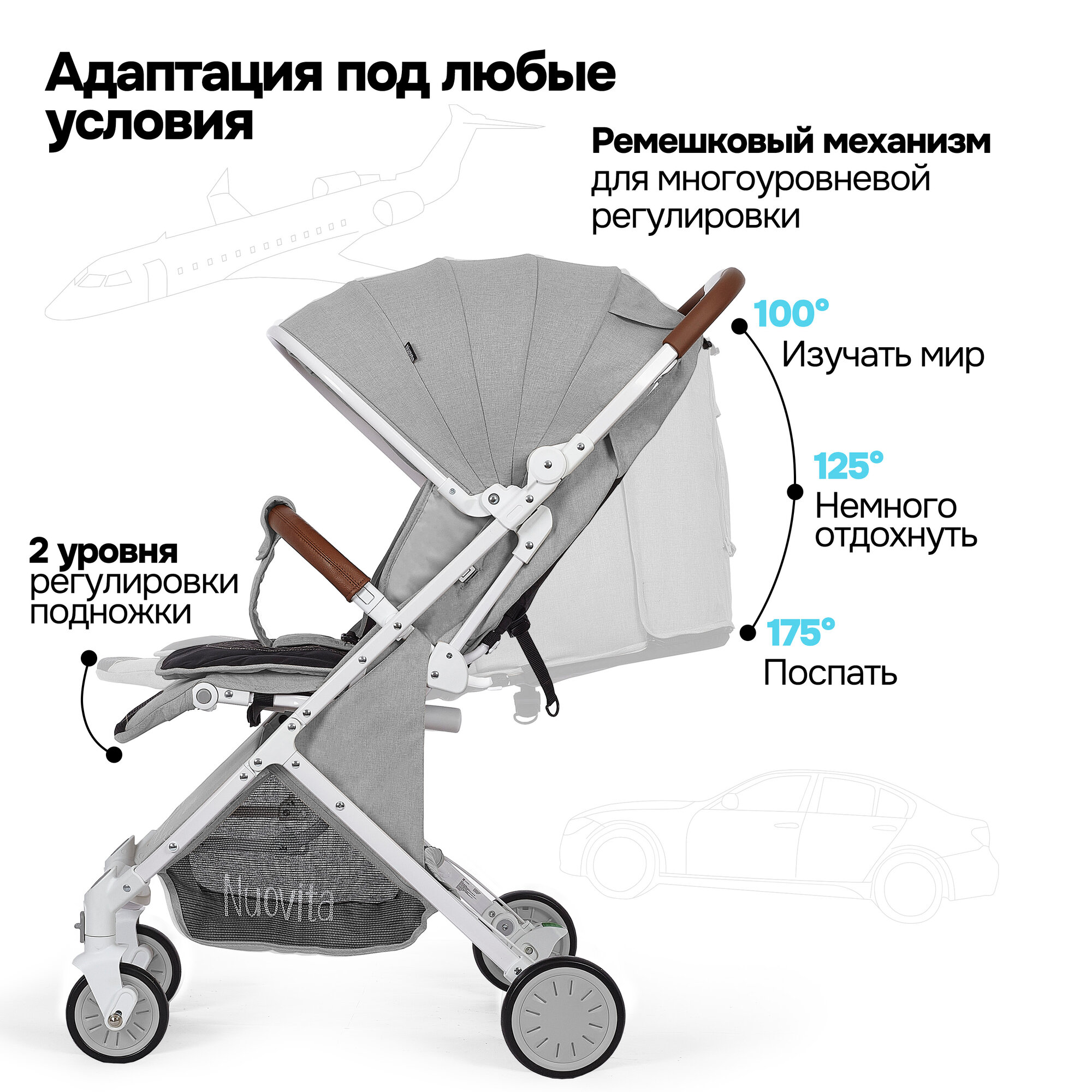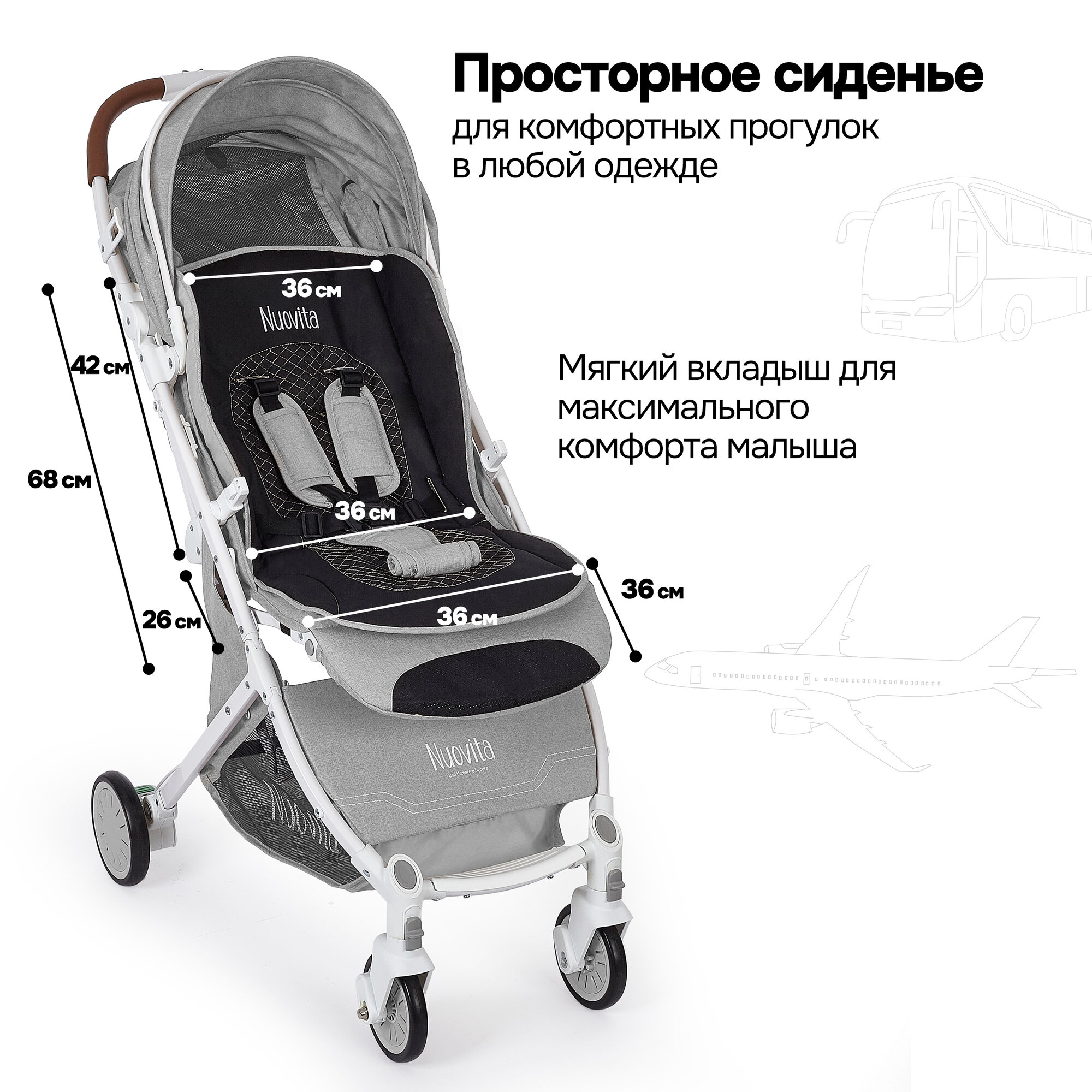 СохранитьКоляска прогулочная детская Nuovita Giro Lux , складная, сумка-чехол в комплекте (Серый, Белый) интересное:
