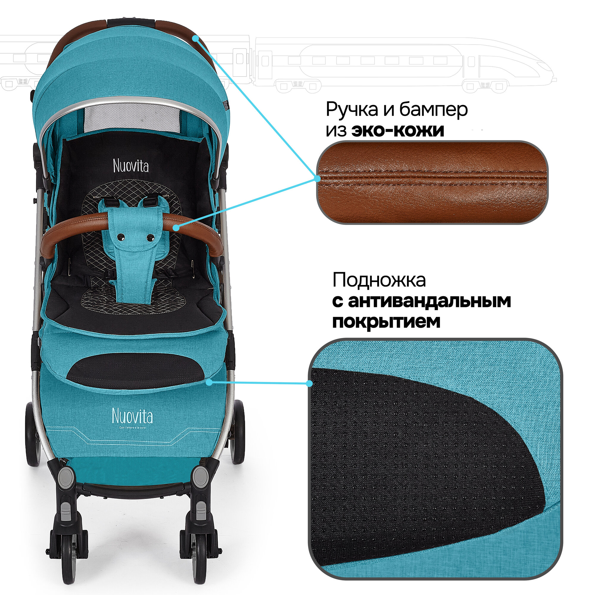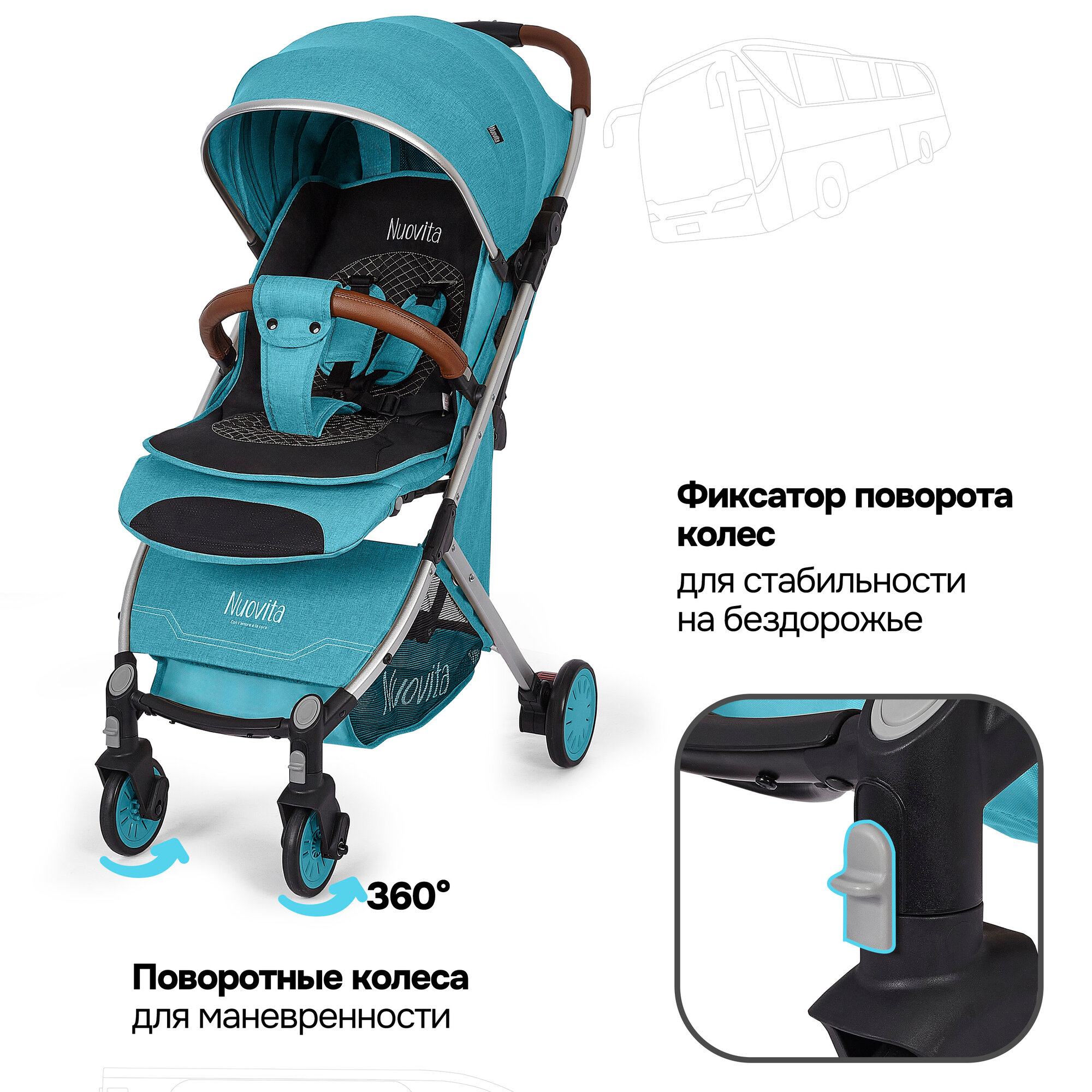 СохранитьКоляска прогулочная детская Nuovita Giro Lux , складная, сумка-чехол в комплекте (Бирюзовый, Серый) интересное: