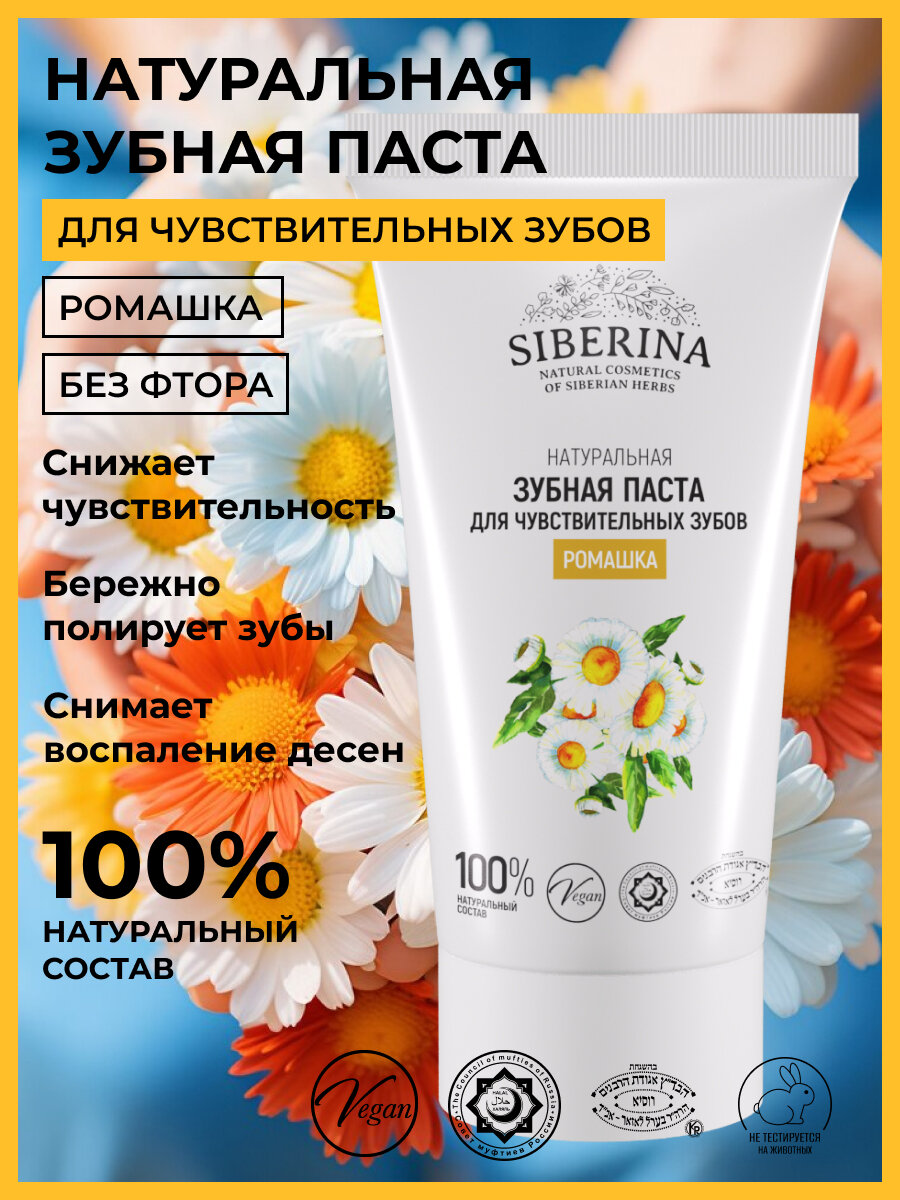 Siberina Натуральная зубная паста для чувствительных зубов "Ромашка" 50 мл интересное: