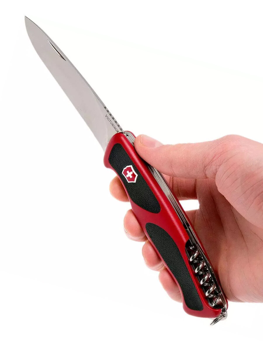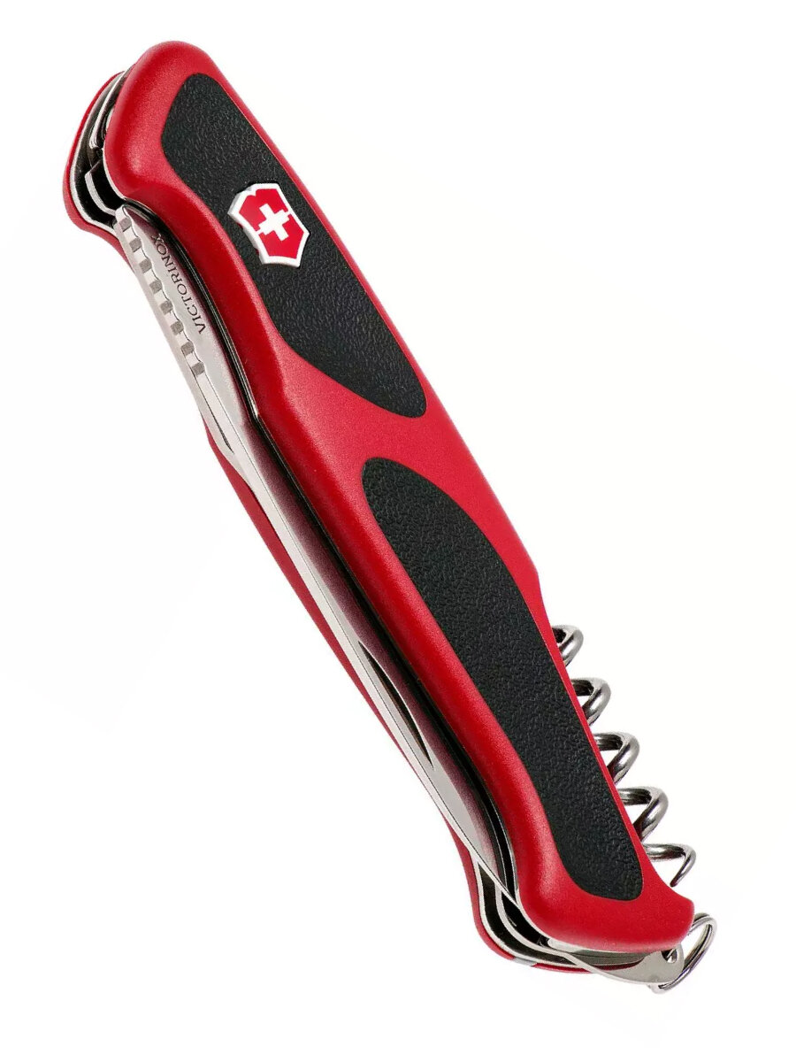 Нож перочинный VICTORINOX RangerGrip 55, 130 мм, 12 функций, с фиксатором лезвия, красный с чёрным (0.9563.C)