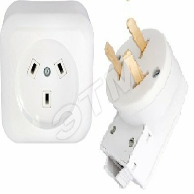 Тройник для розетки электрический с заземлением 16А, белый