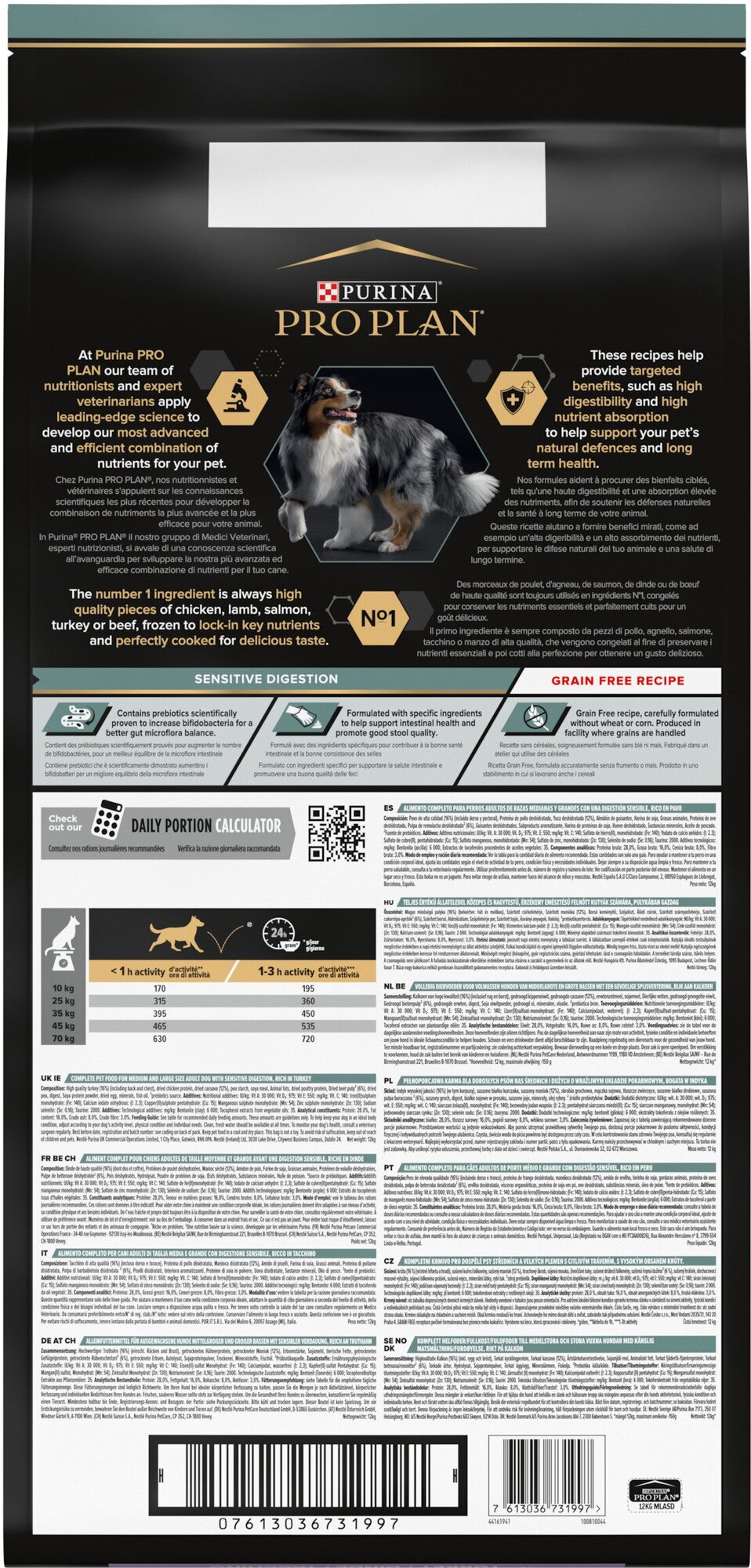Купить Pro Plan корм для собак средних и крупных пород, беззерновой, чувствительное пищеварение, индейка 12 кг