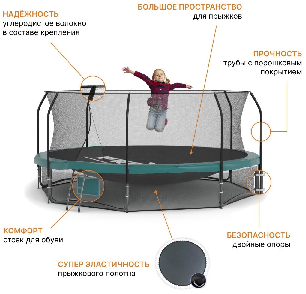 Каркасный батут Proxima Premium 14ft (427 см) 427х427 см зеленый интересное: