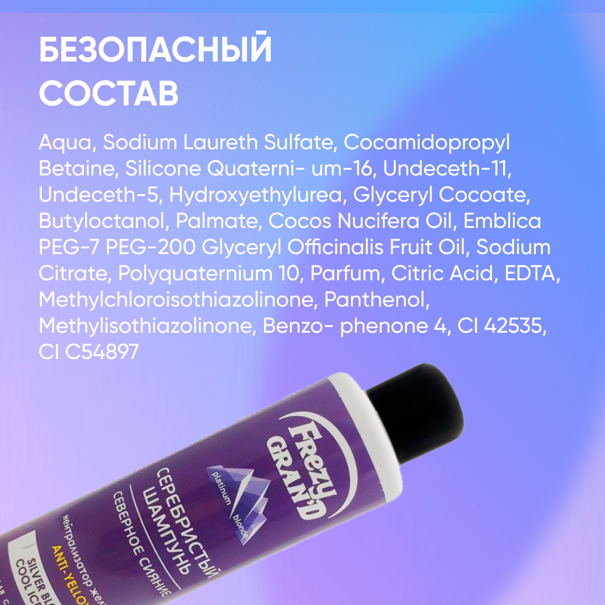 Купить Шампунь Frezy Grand серебристый для нейтрализации желтизны светлых волос Северное сияние 1000 мл