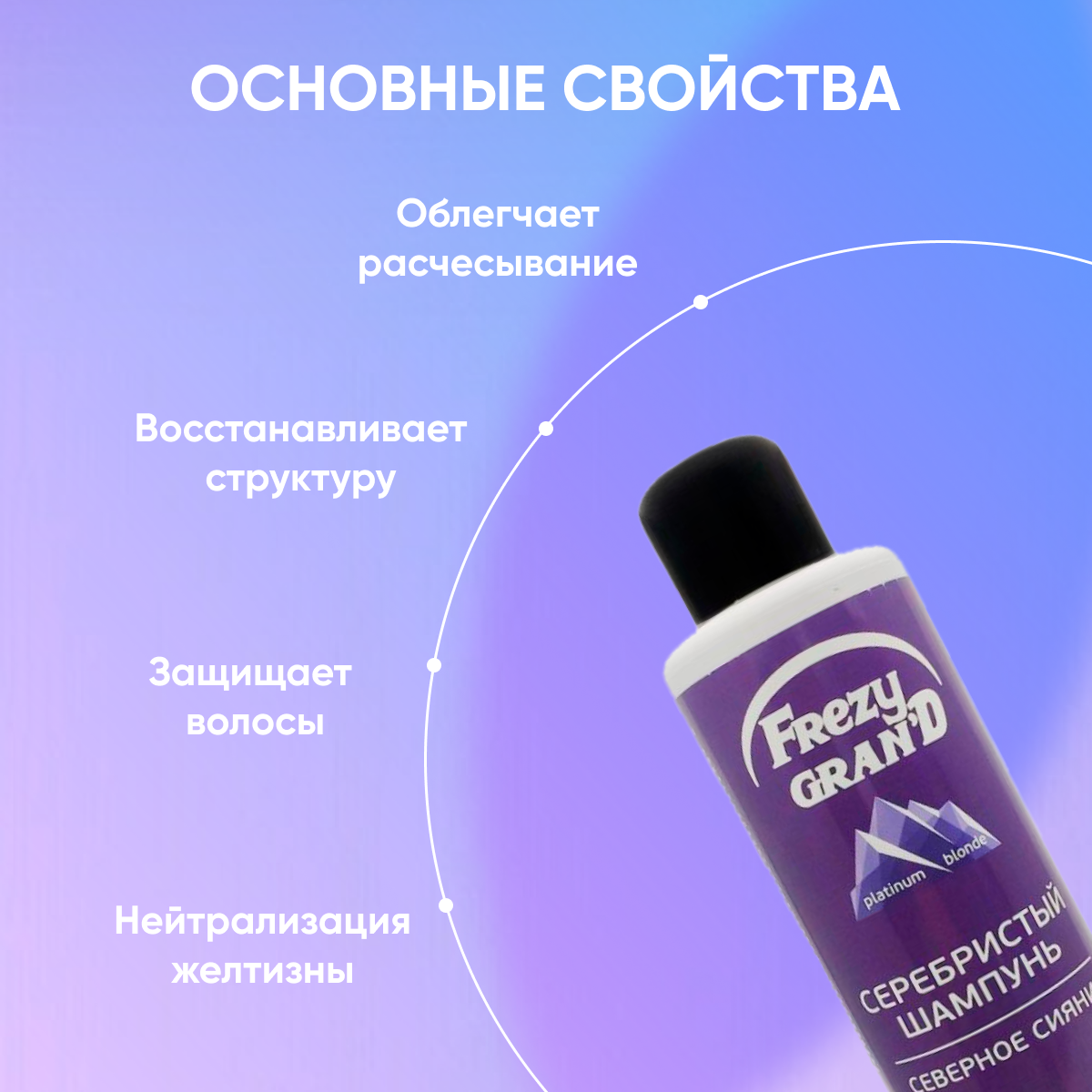 Шампунь Frezy Grand серебристый для нейтрализации желтизны светлых волос Северное сияние 1000 мл