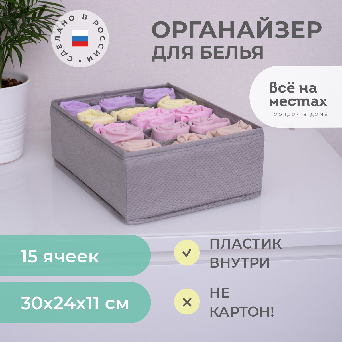 | Отзыв: | Всё на местах - всё трусики и носочки. Очень мягкий органайзер - только для использования в ящике с твёрдыми стенками-ограничителями и твердым дном |