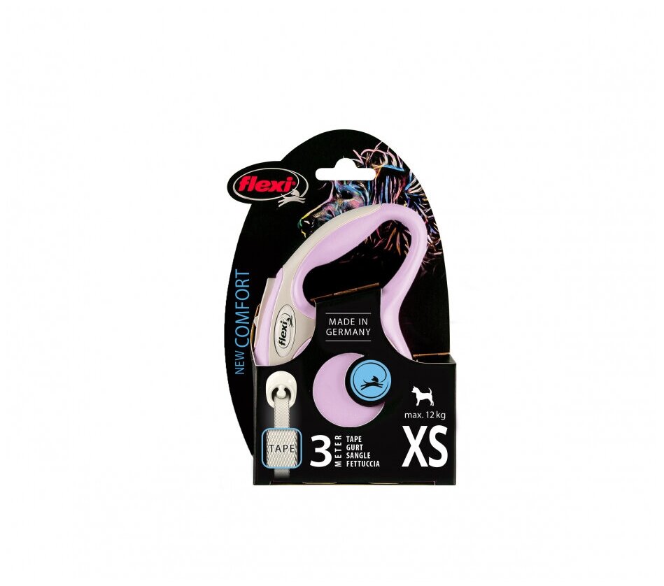 Поводок Flexi New Comfort XS, 3 м, 12 кг, лента, розовый