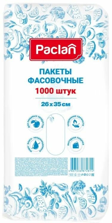 Paclan Пакеты фасовочные, 26х35 см, 1000шт.