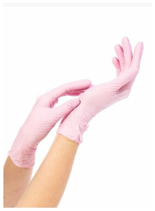 Перчатки нитриловые Benovy (розовые, размер L, 100 штук)