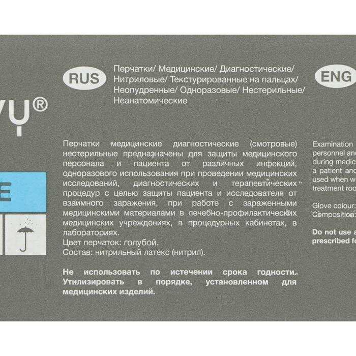 | Минусы: | Именно голубые рвутся легко и пол пачки бракованные!!!! То с дырками на ладошках, то склеянные, то с ошметками от других перчаток... |