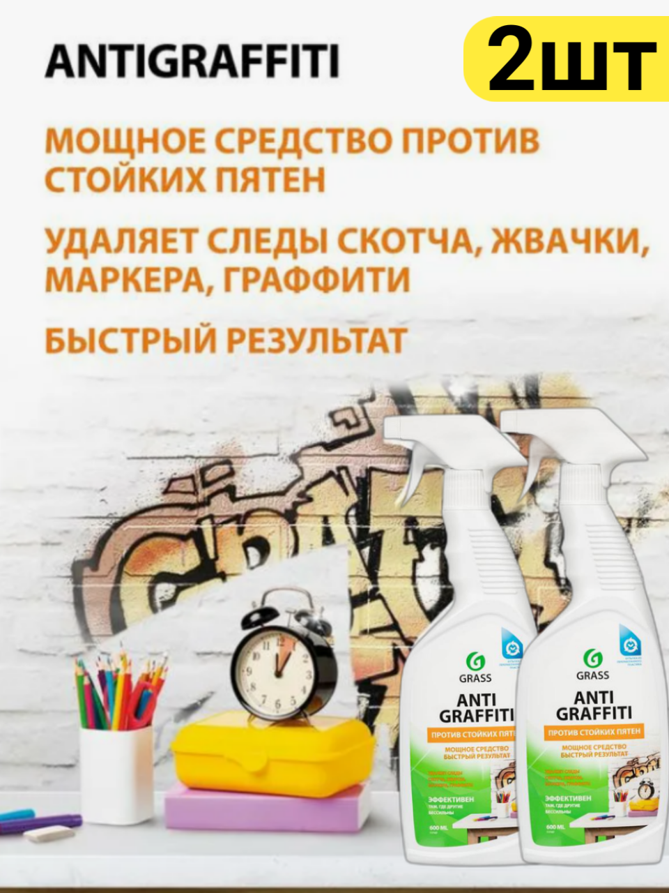 Grass Средство для удаления пятен,старого скотча,жвачки антиграффити 600 мл,2 шт.