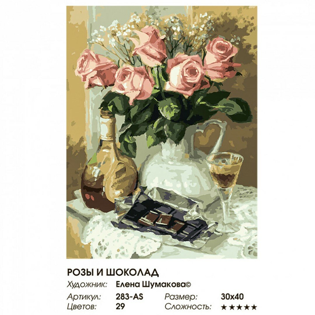 Розы и шоколад #283-AS Белоснежка Раскраска по номерам 30 х 40 см