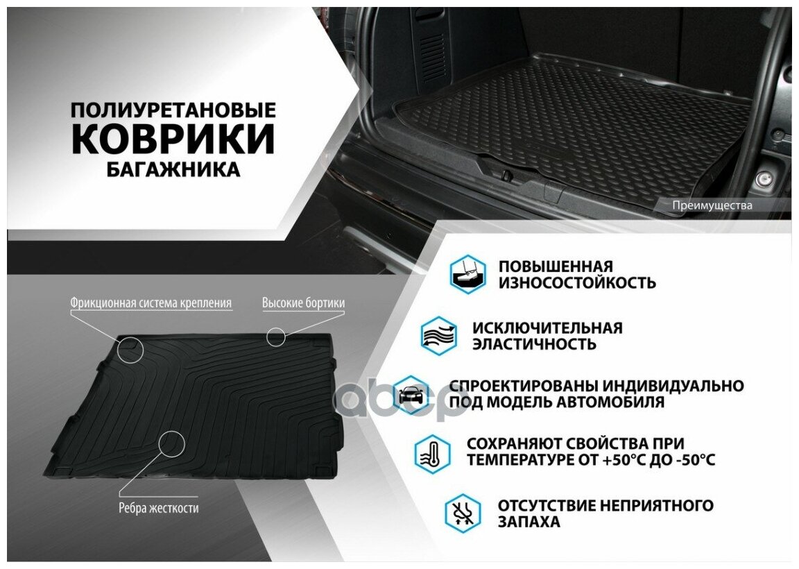 Коврик Багажника Renault Kaptur Черный Полиуретан Rival 14707003 Rival арт. 14707003