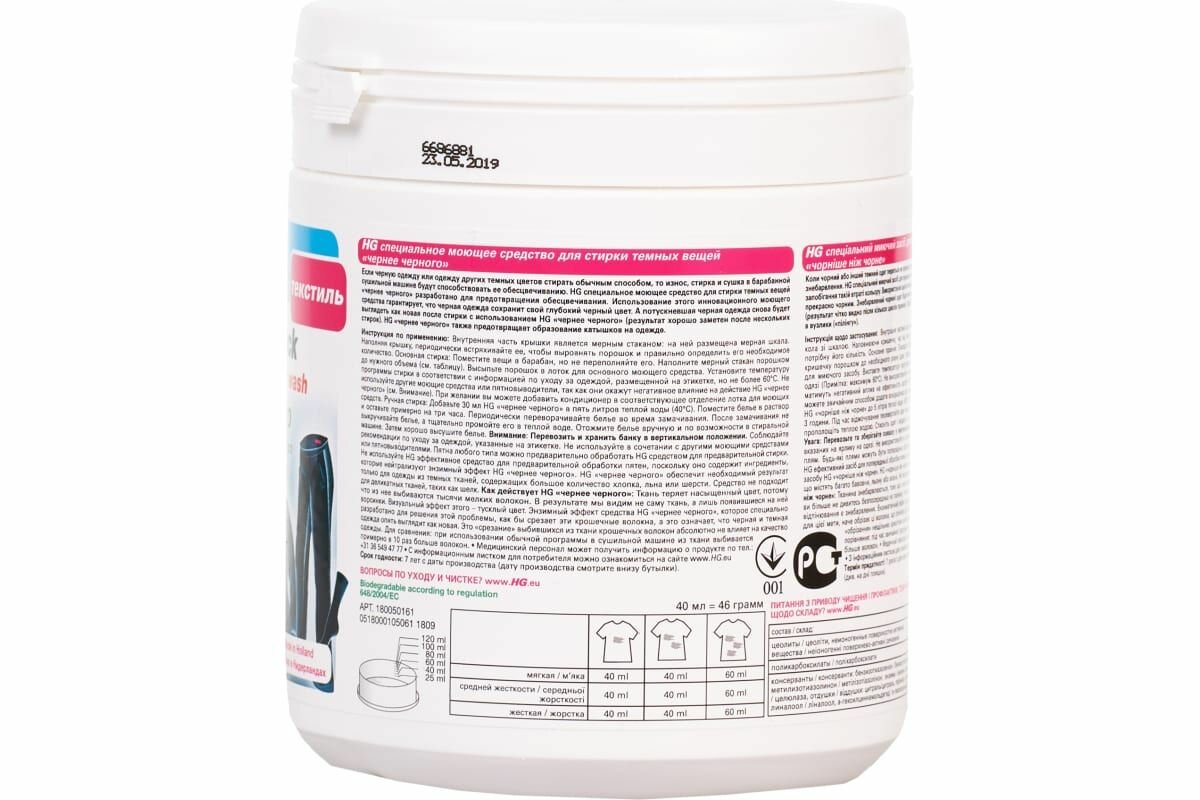 HG Специальное моющее средство для стирки темных вещей Чернее черного 500 гр в банке