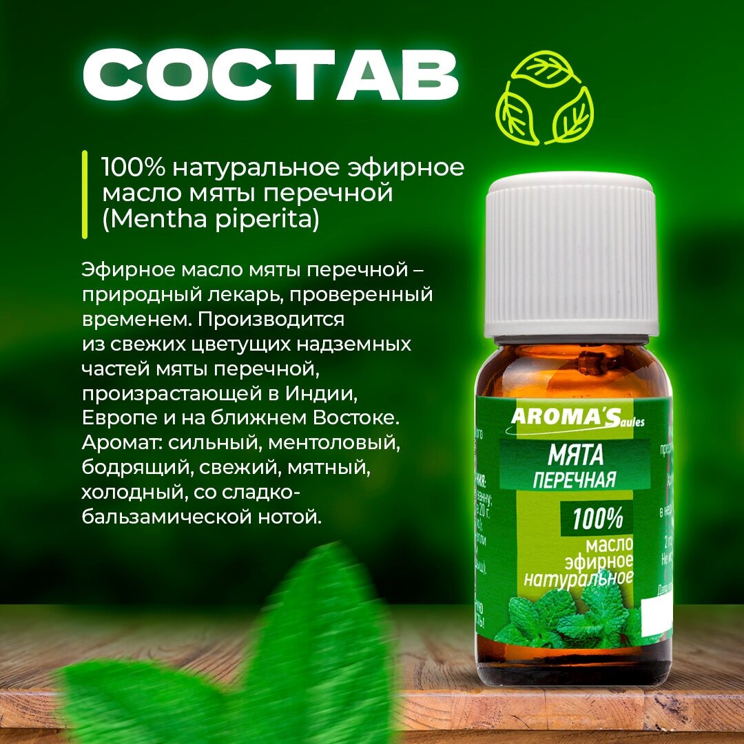 AROMA'Saules эфирное масло Мята перечная, натуральное, 10 мл интересное: