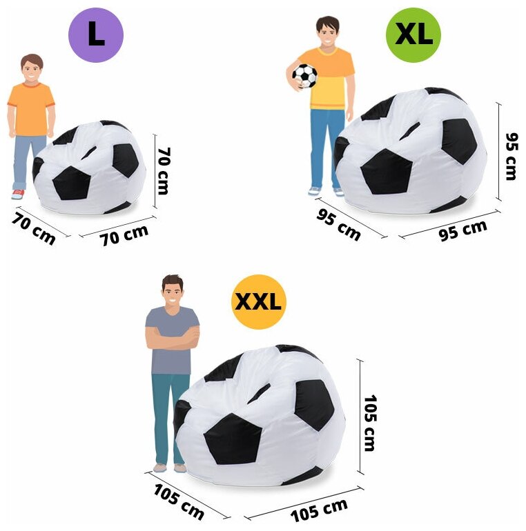 Кресло-мешок «Мяч», XXL, оксфорд, Белый и черный