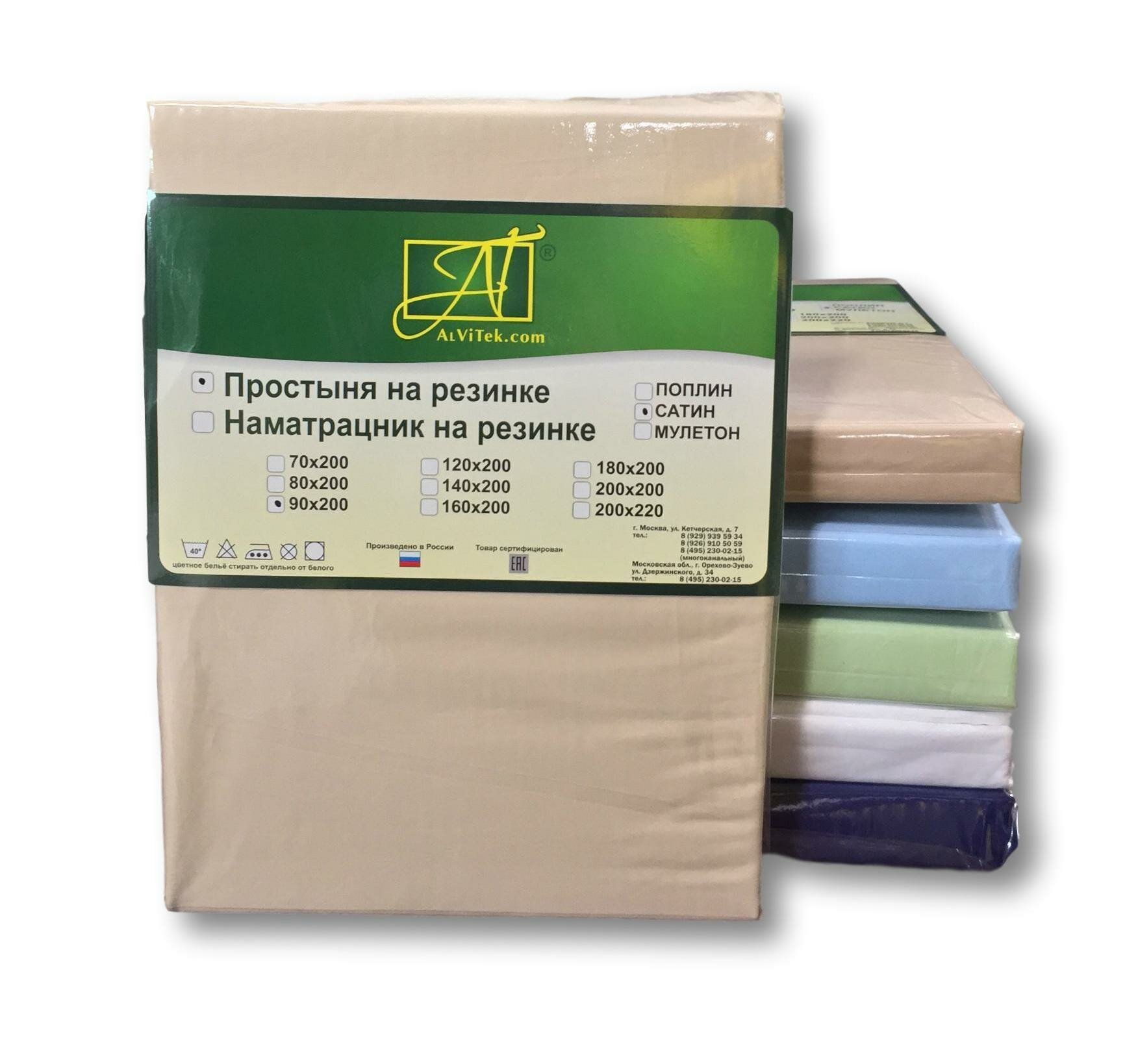 Простыня Альвитек сатин на резинке, 140х200+25, бежевый