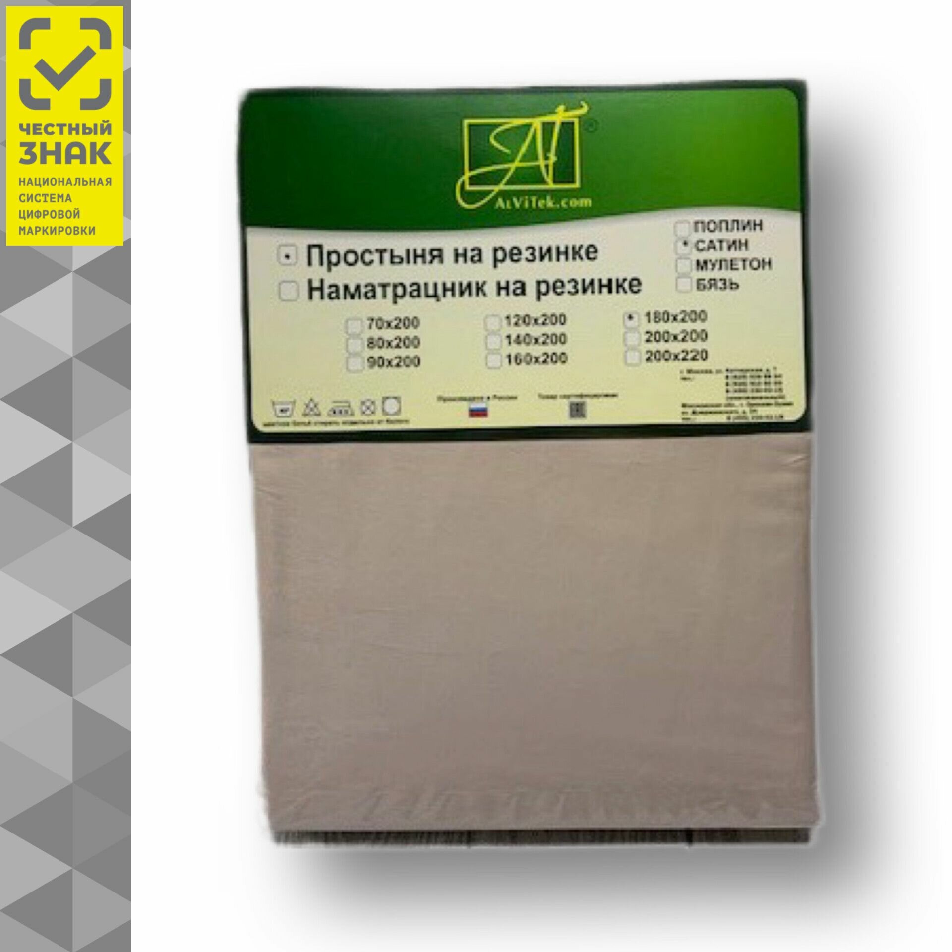 Простыня АльВиТек сатин на резинке 180 х 200 см
