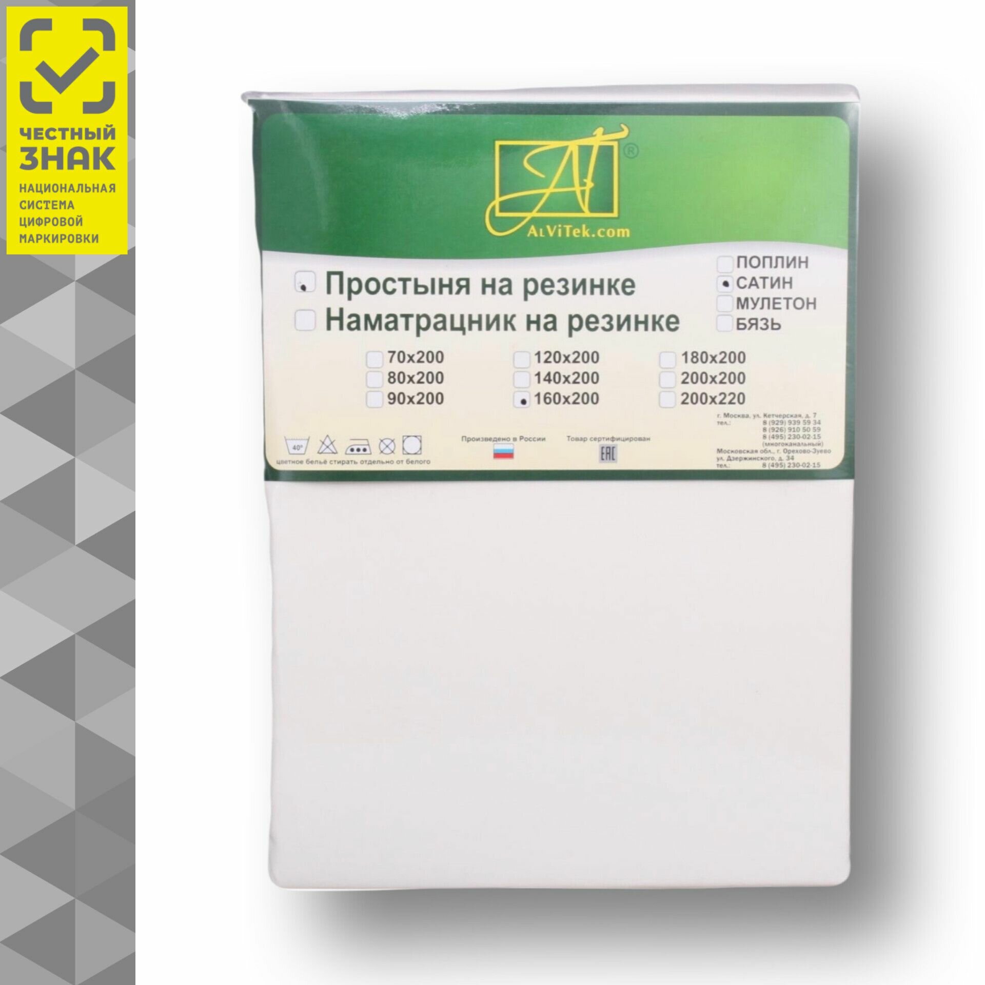Простыня на резинке из сатина Alvitek ПР-СО-Р-090-БЕЛ белая 90х200х25